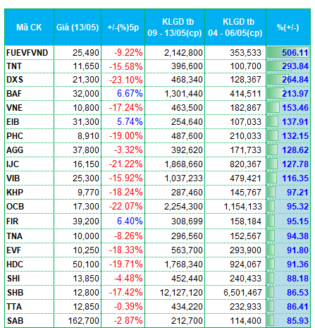 Tổng quan thanh khoản thị trường 09 - 16/05 |