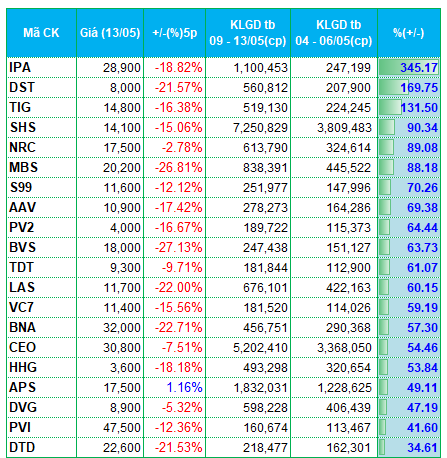 Top 20 mã có thanh khoản tăng/giảm cao nhất sàn HNX ![]() |