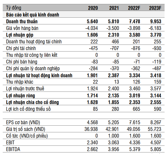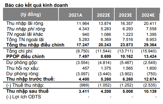Tiếp đó, Yuanta tăng dự báo lãi ròng năm 2022 lên 5% và đạt 4.2 ngàn tỷ đồng (tăng 23% so với 2021). Dự báo này thấp hơn 12% so với mức trung bình của các bên. Dự báo lãi ròng năm 2023 của Yuanta giảm 35% so với các báo cáo khác vì có vẻ các bên đang cho rằng STB sẽ hoàn tất tái cơ cấu trong năm 2022.