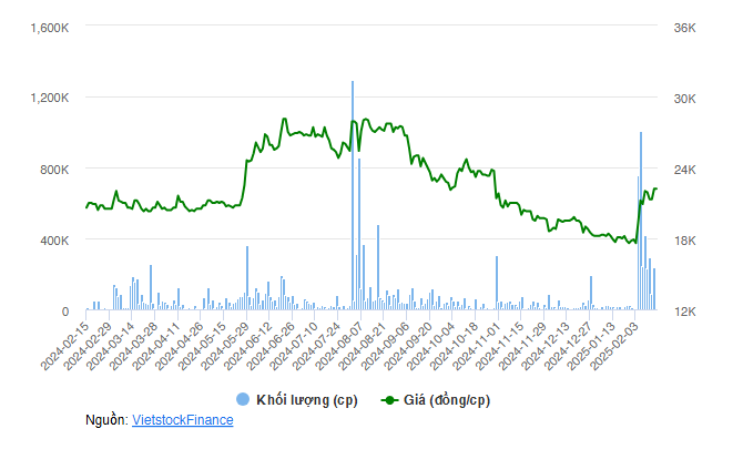 Trên thị trường chứng khoán, giá cổ phiếu SJE lao dốc từ cuối tháng 8/2024, giảm 37% từ mức 27,000 đồng/cp xuống 17,000 đồng/cp vào đầu tháng 2/2025 - mức thấp nhất trong hơn 3 năm. Tuy nhiên, ngay trong thời điểm ông Sơn thoái vốn, cổ phiếu này bật tăng mạnh, tăng kịch trần 2 phiên liên tiếp (04-05/02) và hiện giao dịch quanh mức 22,000 đồng/cp, tăng 28% từ đáy.