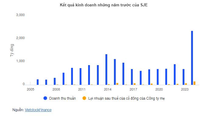 Về tình hình kinh doanh, năm 2024, SJE đạt doanh thu thuần gần 2,360 tỷ đồng (gấp 3.3 lần năm 2023) và lãi ròng gấp đôi, đạt gần 155 tỷ đồng, chủ yếu nhờ thu hồi vốn từ các công trình. Đây đều là các con số doanh thu và lợi nhuận cao nhất trong lịch sử hoạt động của Doanh nghiệp.