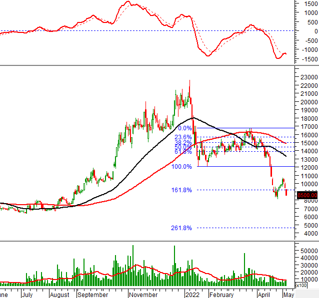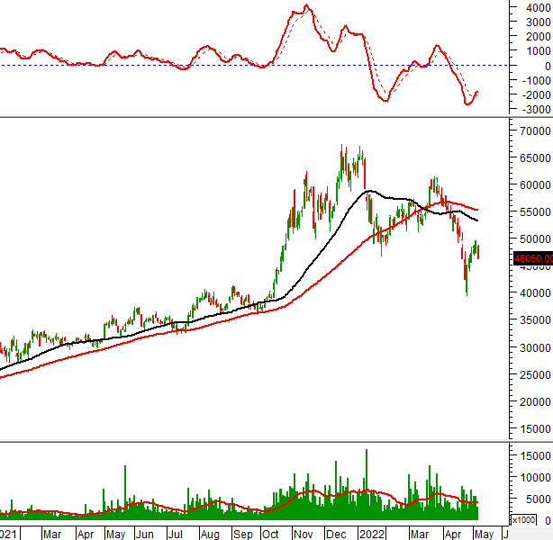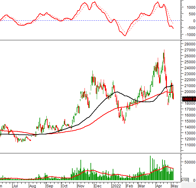 Khối lượng giao dịch tăng đột biến và vượt mức trung bình 20 ngày trong phiên giao dịch ngày 09/05/2022 chứng tỏ nhà đầu tư chưa rời bỏ cổ phiếu này.