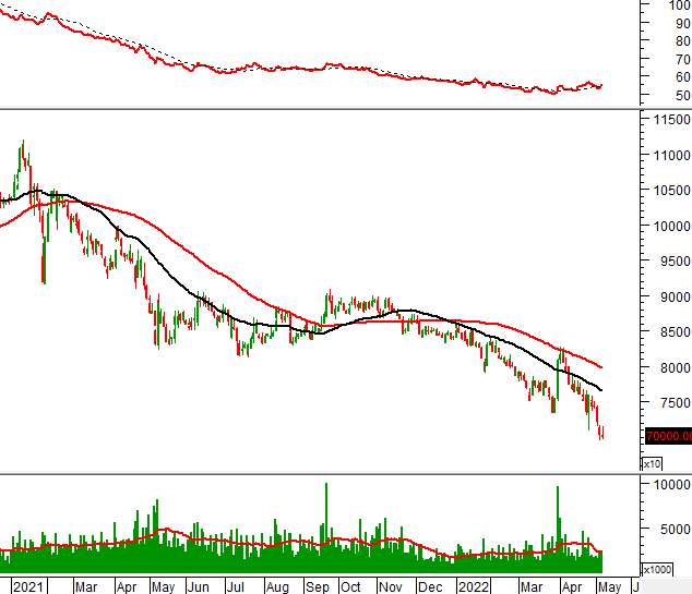 Trong phiên giao dịch ngày 09/05/2022, VGI hình thành cây nến Black Marubozu điển hình có thân rất dài cho thấy tâm lý bi quan của nhà đầu tư trong ngắn hạn.