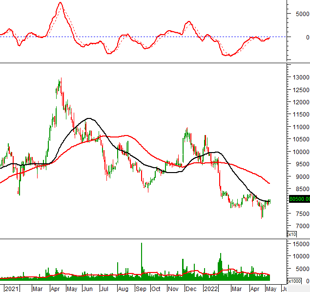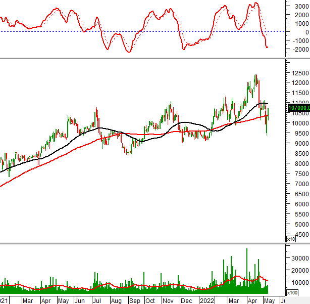 Khối lượng giao dịch giảm trở lại và nằm dưới mức trung bình 20 ngày trong phiên giao dịch ngày 11/05/2022 chứng tỏ nhà đầu tư đang thận trọng.