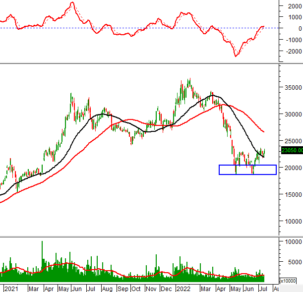 Đáy cũ tháng 04/2022 (tương đương vùng 19,000-19,500) đang hỗ trợ rất tốt cho IBC. Người viết dự kiến vùng này sẽ tiếp tục trụ vững trong tuần tới.
