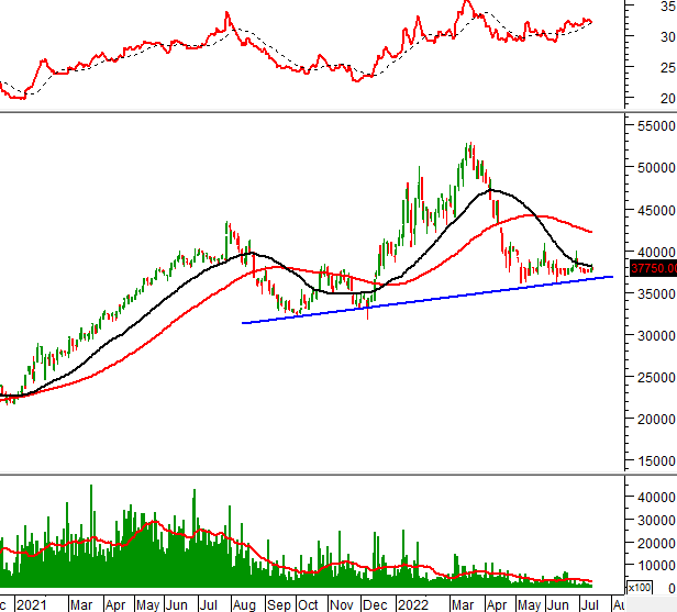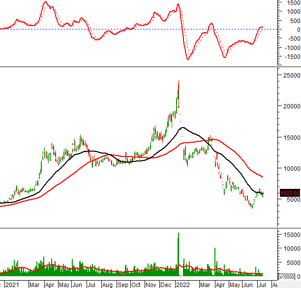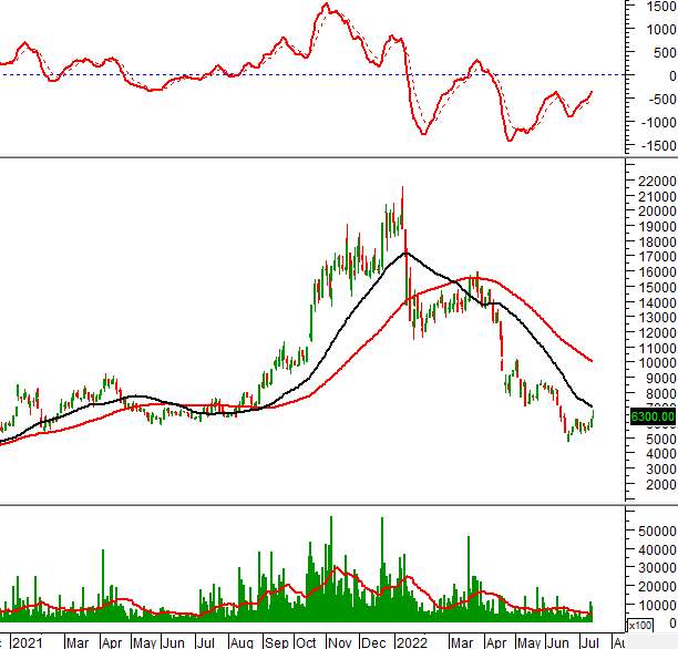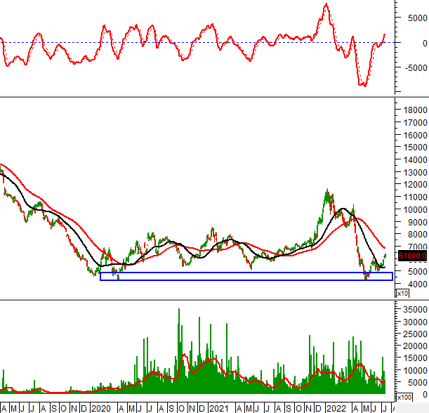 Giá đã vượt đường SMA 50 ngày nên đà tăng đã được xác nhận. Mặt khác, vùng 42,000-48,000 sẽ là hỗ trợ mạnh cho giá cổ phiếu CTD trong thời gian tới.