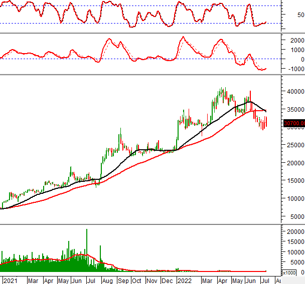 Hỗ trợ trong ngắn hạn của NVB là vùng 27,000-30,000 (tương đương đáy cũ tháng 03/2022).