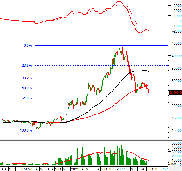 Giá rung lắc mạnh và tiếp tục giảm về gần đáy cũ tháng 05/2022 (tương đương vùng 21,500-23,000).