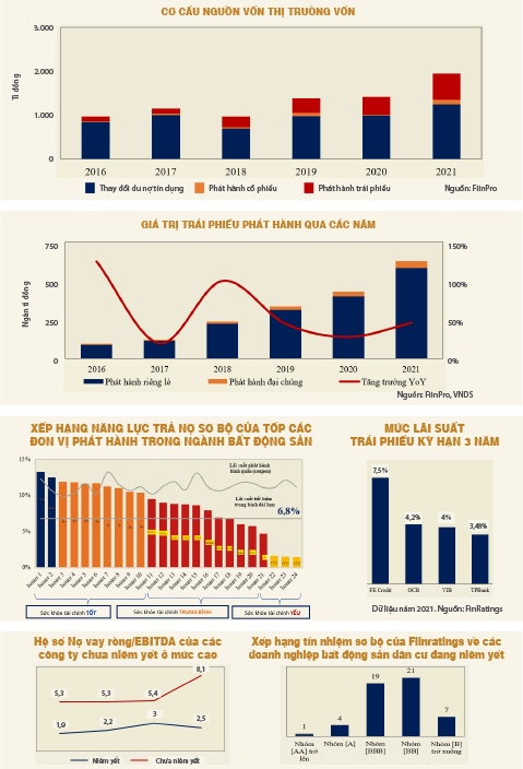 Thống kê cho thấy, lũy kế chín tháng đầu năm 2021 có đến 80% giá trị trái phiếu được phát hành đến từ doanh nghiệp bất động sản chưa niêm yết. Phần lớn các doanh nghiệp này có sức khỏe tài chính ở mức đáng báo động cho nhà đầu tư. Theo các đánh giá sơ bộ về hệ số nợ của nhóm doanh nghiệp chưa niêm yết cho thấy hệ số Nợ vay ròng/Vốn chủ sở hữu ở mức 8,1 lần, trong khi con số này chỉ là 2,5 lần đối với các doanh nghiệp niêm yết. Mức tỷ lệ vay nợ lớn sẽ khiến khả năng hoàn trả cho nhà đầu tư trái phiếu gặp vấn đề lớn khi tình hình kinh doanh của các doanh nghiệp này không thuận lợi.
