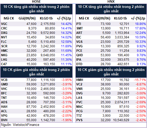 Top cổ phiếu đáng chú ý đầu phiên 10/06