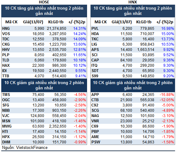 Top cổ phiếu đáng chú ý đầu phiên 14/07