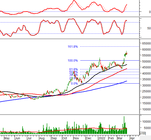 Giá đã phá vỡ hoàn toàn đỉnh cũ của tháng 01/2022 (tương đương vùng 51,000-53,000) và hướng tới mục tiêu Fibonacci Projection 161.8% (tương đương vùng 62,000-63,000).