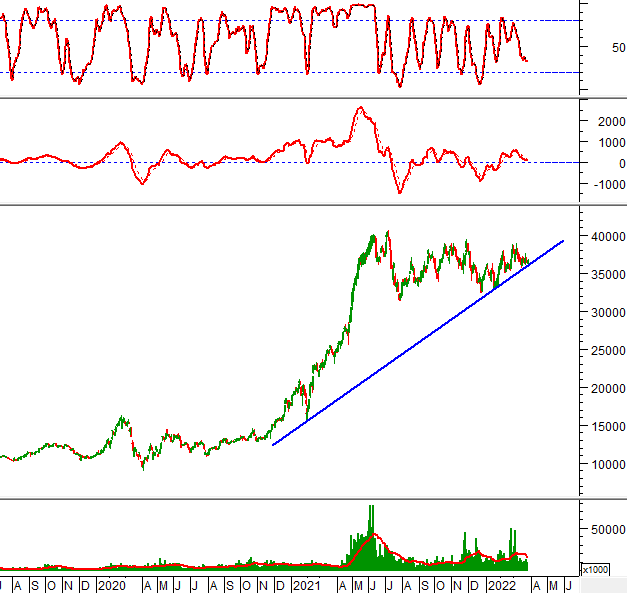 Kể từ sau khi test thành công trendline dài hạn (tương đương vùng 35,500-36,500), giá liên tục biến động tích cực.