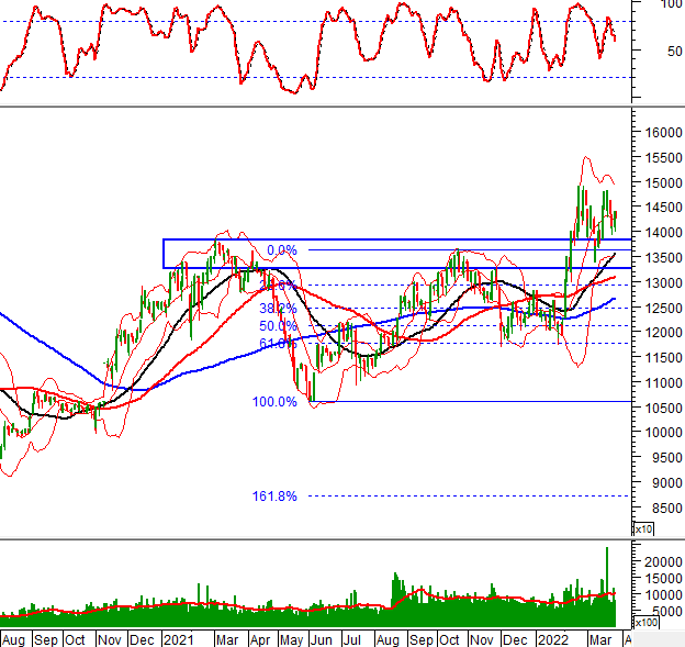 Đỉnh cũ tháng 03/2021 (tương đương vùng 133,000-138,000) sẽ là hỗ trợ mạnh cho cổ phiếu nếu đà giảm tiếp tục trong thời gian tới.