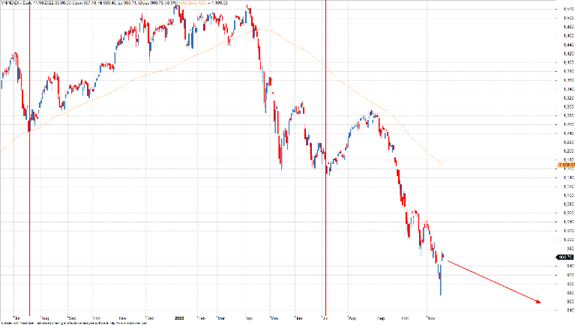 Thị trường đã hình thành một vùng đáy mới thấp hơn đáy tháng 07/2022, qua đó xác nhận một kịch bản tiêu cực về diễn biến của chỉ số VN-Index trong năm 2022. Theo những phân tích về chu kỳ, chỉ số có thể tiếp tục điều chỉnh đến giữa năm 2023, cụ thể là từ tháng 05/2023-09/2023 một đáy quan trọng có thể xuất hiện, sau đó thị trường có thể phục hồi mạnh mẽ.