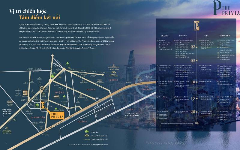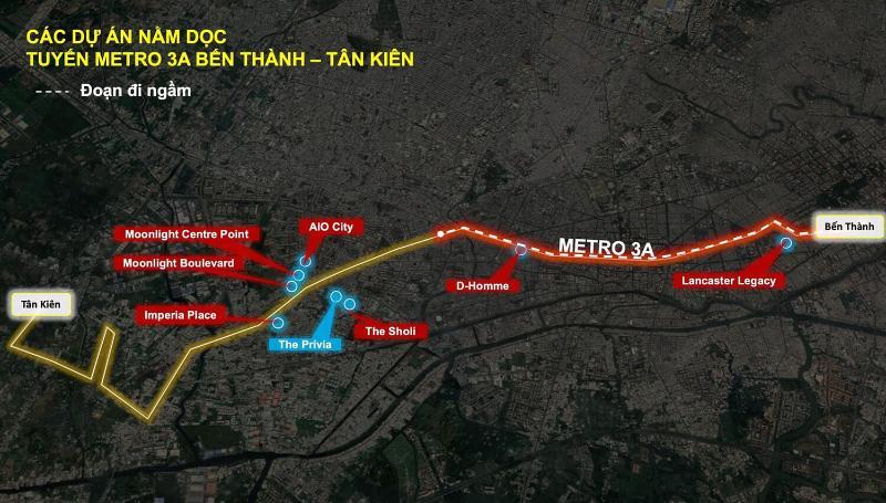 Một lý do khiến vị trí dự án The Privia trở nên đặc biệt đó là vị trí nằm ngay bên cạnh tuyến Metro số 3A Bến Thành – Tân Kiên. Ai ai cũng biết đây là tuyến Metro trọng điểm của TP.HCM, từ đây cư dân có thể kết nối nhanh chóng đến: