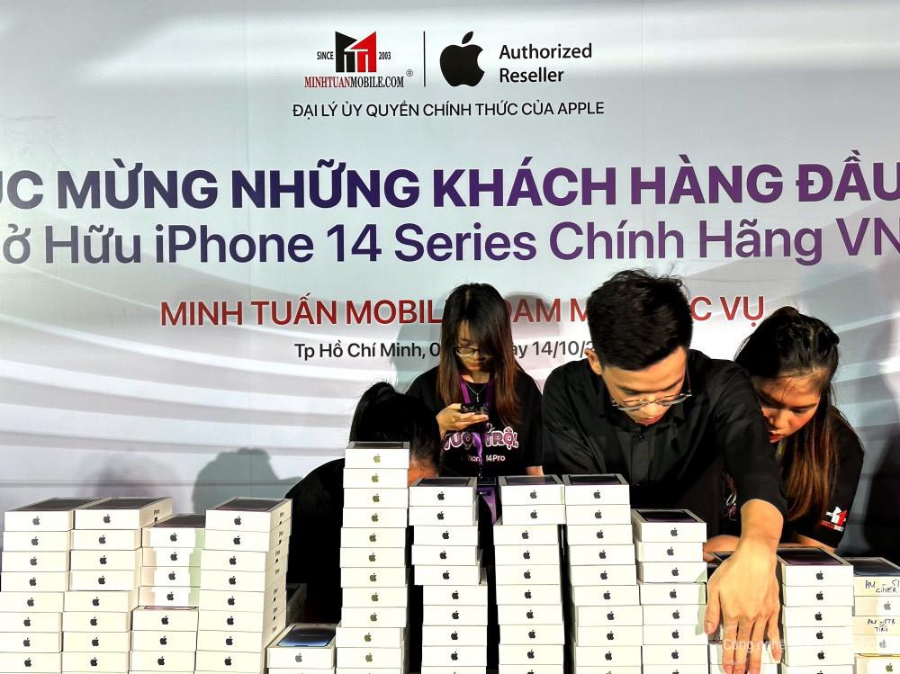 Sức hút của dòng iPhone 14 kéo dài đến ngày mở bán một tuần sau đó. Lần đầu tiên kể từ nhiều năm nay, gần như tất cả các nhà bán lẻ công nghệ có tên tuổi tại Việt Nam đều giao hàng cho khách ở thời điểm giữa đêm, rạng sáng 14/10.