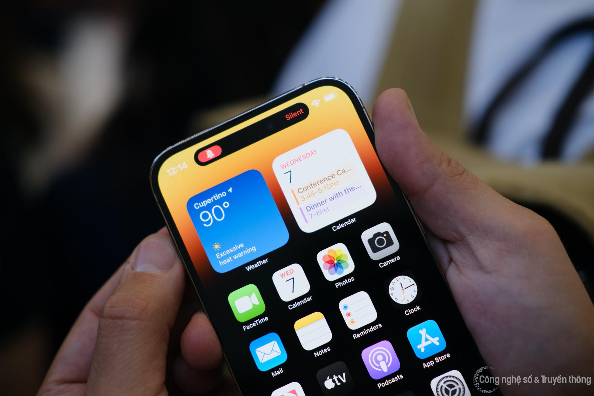 iPhone 14 Pro/Pro Max tạo sức hút nhờ thay đổi trên cụm Dynamic Island và màu sắc mới. (Ảnh: Hải Đăng)