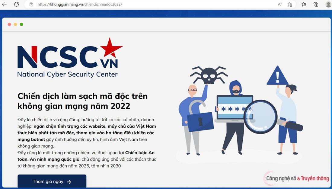 Với riêng “Chiến dịch làm sạch mã độc trên không gian mạng” năm 2022, được Bộ TT&TT phát động từ giữa tháng 9 nhằm hưởng ứng ngày Chuyển đổi số quốc gia 10/10, chiến dịch đã được triển khai đồng bộ trên toàn quốc, với các phần mềm phòng chống mã độc đã được cập nhật, cho phép sử dụng miễn phí trên Cổng thông tin không gian mạng quốc gia tại địa chỉ khonggianmang.vn/chiendichmadoc2022.