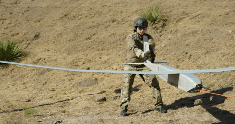 Một người lính chuẩn bị phóng drone Puma LE. Ảnh: AeroVironment