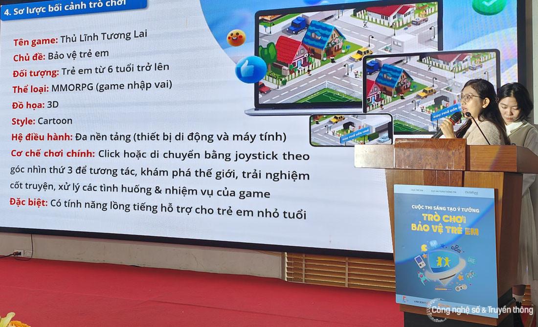 Trong vòng thi chung kết, 3 tác giả và nhóm tác giả xuất sắc nhất cuộc thi Sáng tạo ý tưởng trò chơi về bảo vệ trẻ em đã thuyết trình ý tưởng game của mình và giải đáp thắc mắc của Ban giám khảo.