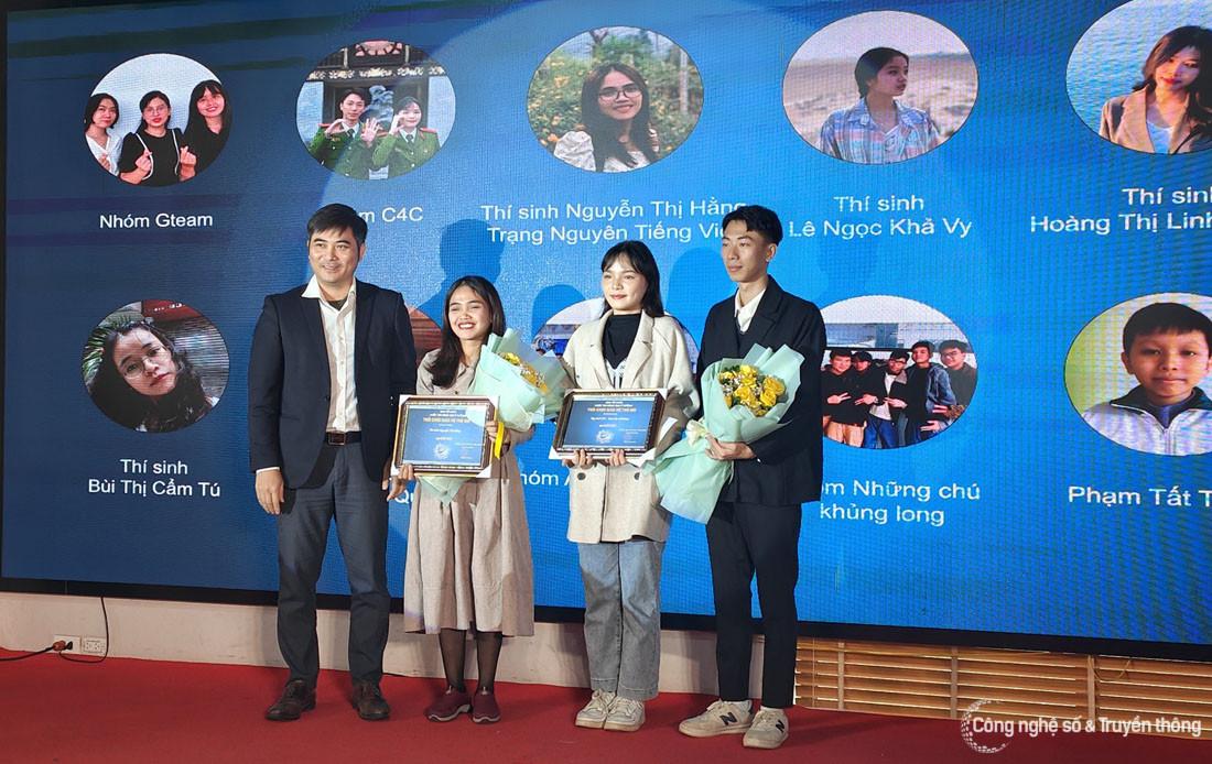 Giám đốc VNCERT/CC Nguyễn Đức Tuân trao giải Nhì cho các tác giả, nhóm tác giả.