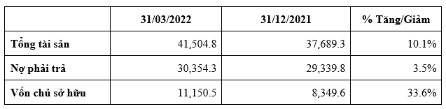 Tại thời điểm 31/03/2022, tổng tài sản của BCG ghi nhận tăng 10% so với đầu năm, đạt 41,504 tỷ đồng nhờ tăng trưởng tài sản cố định. Điều này đã ghi nhận nỗ lực của công ty trong việc đầu tư, đảm bảo tiến độ và chất lượng các dự án.