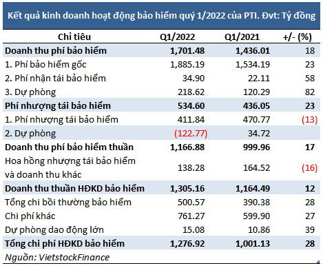 Hoạt động kinh doanh bảo hiểm của PTI đi lùi với lợi nhuận gộp giảm 83% so cùng kỳ, còn hơn 28 tỷ đồng. Nguyên nhân do chi phí tăng 28%, trong khi doanh thu chỉ tăng 12%.