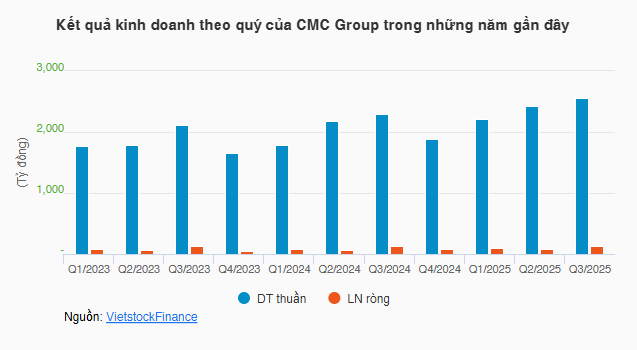Về tình hình kinh doanh, theo BCTC quý 3/2025 (01/10-31/12/2025) công bố gần đây, CMC Group ghi nhận doanh thu thuần hơn 2,563 tỷ đồng, tăng 11% so với cùng kỳ năm 2024. Sau cùng, Công ty lãi ròng gần 135 tỷ đồng, tăng 6%.