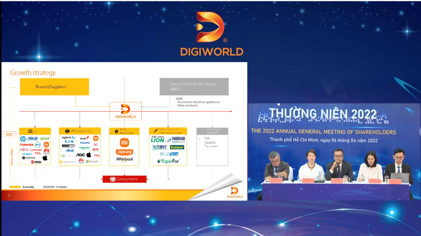Đại hội lần này đã thông qua bổ sung ngành nghề buôn bán đồ dùng gia đình, bán lẻ thuốc, dụng cụ y tế, mỹ phẩm. Ông Đoàn Hồng Việt chia sẻ DGW sẽ tham gia mảng dược sau khi hoàn tất các vấn đề pháp lý. Định hướng là tới 2025, Công ty xếp top 3 về phân phối thiết bị y tế và thuốc.