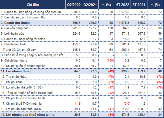 Kết quả kinh doanh hợp nhất quý 2 và 6 tháng đầu năm 2022 của GEG. Đvt: Tỷ đồng Nguồn: VietstockFinance |