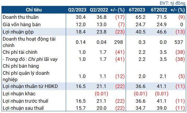 Cụ thể, quý 2, NTH báo doanh thu giảm 17% so với cùng kỳ, còn 30.4 tỷ đồng. Khấu trừ cho giá vốn, Doanh nghiệp đạt lãi gộp 18.4 tỷ đồng, giảm 23%.