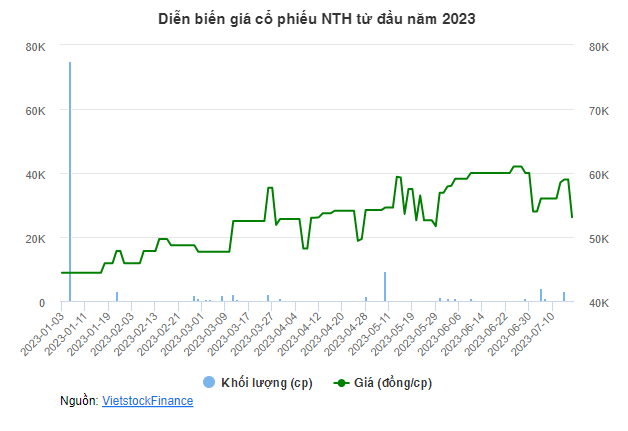 Trên thị trường chứng khoán, cổ phiếu NTH có thanh khoản thấp, nhiều phiên không có giao dịch. Sáng ngày 17/07, thị giá là 53,100 đồng/cp.