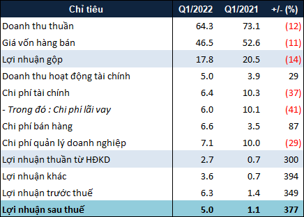 Ngoài ra, Công ty còn ghi nhận phần lợi nhuận từ hoạt động khác gần 4 tỷ đồng, gấp gần 5 lần so với cùng kỳ 2021.