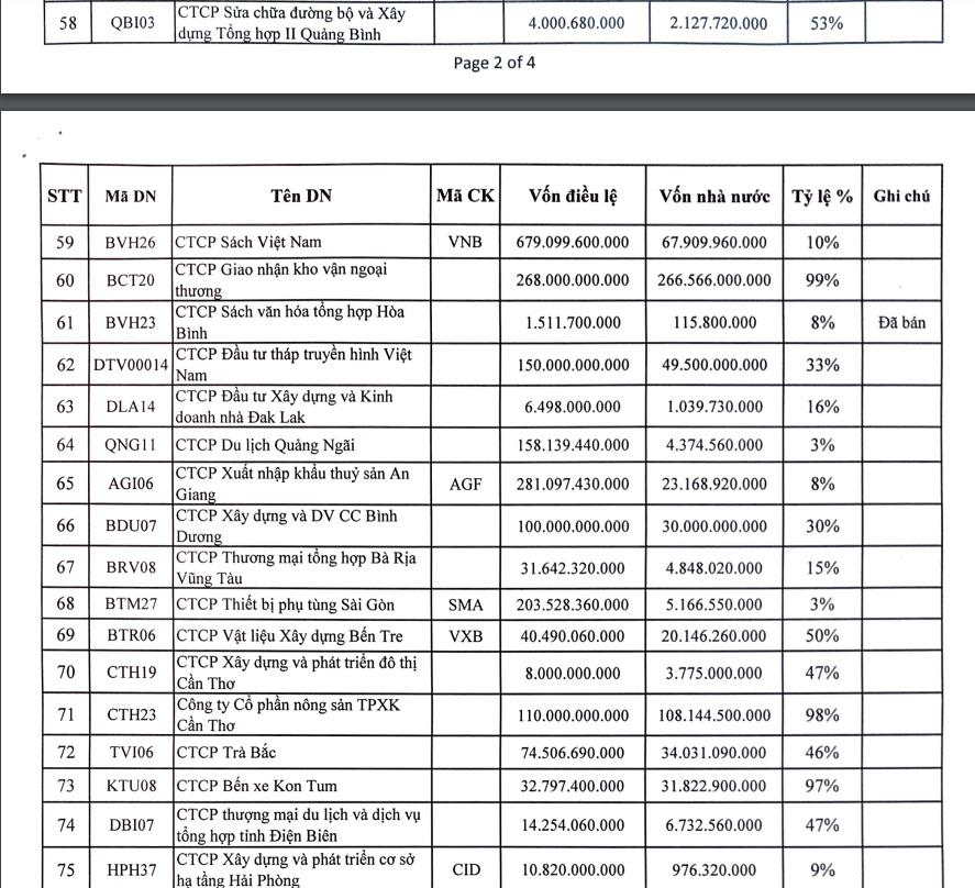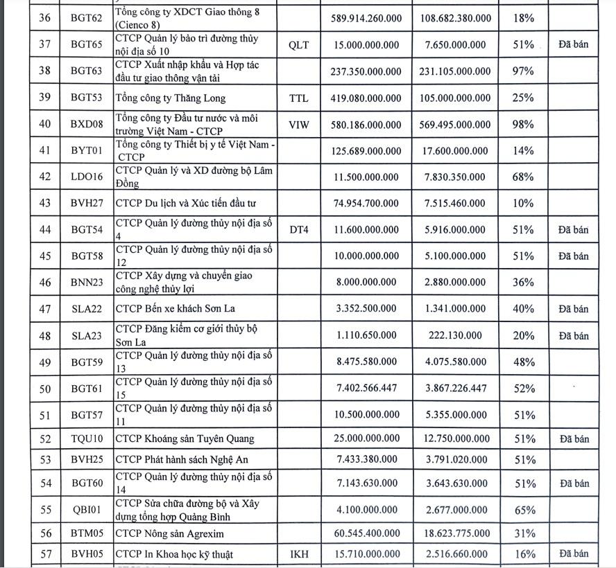 Danh sách 101 doanh nghiệp bán vốn của SCIC năm 2022.