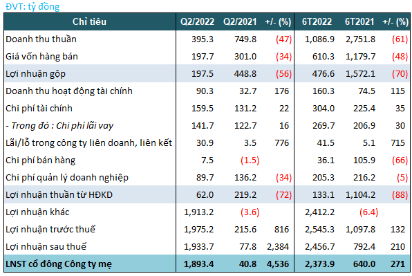 Kết quả kinh doanh quý 2/2022 của KBC Nguồn: VietstockFinance |