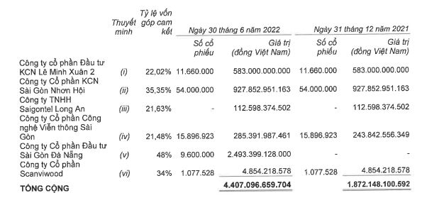 Theo giải trình trong thuyết minh BCTC hợp nhất quý 2, mức tăng đột biến đến từ chênh lệch giữa phần sở hữu trong tài sản thuần của bên bị mua và giá trị hợp nhất kinh doanh trong giao dịch tăng tỷ lệ sở hữu lên 48% với CTCP Đầu tư Sài Gòn - Đà Nẵng.