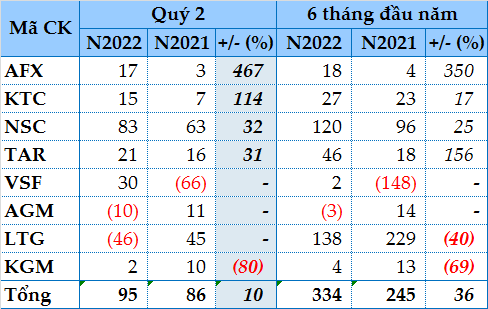 CTCP Xuất nhập khẩu Nông sản Thực phẩm An Giang (UPCoM: AFX) và CTCP Thương mại Kiên Giang (UPCoM: KTC) là 2 doanh nghiệp đứng đầu về tăng trưởng lợi nhuận trong quý 2/2022.