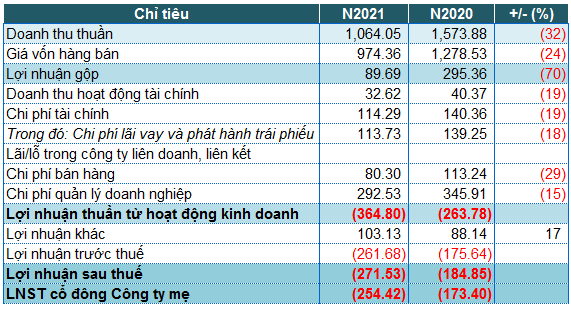 Trong năm, các chi phí cũng giảm so với năm 2020 như chi phí tài chính (-19%), chi phí bán hàng (-29%), chi phí quản lý doanh nghiệp (-15%).