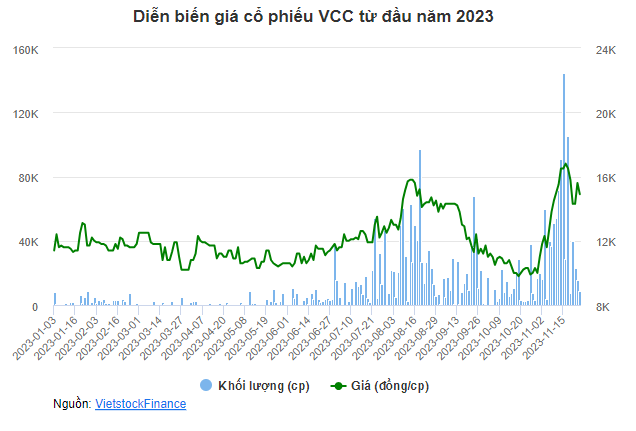 Diễn biến giá cổ phiếu VCC từ đầu năm 2023 | ||