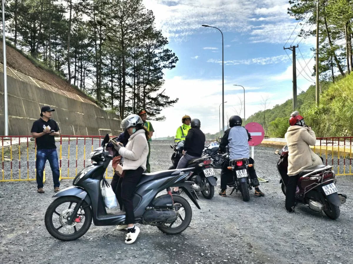 An ninh được chính quyền TP. Đà Lạt thắt chặt, đảm bảo người dân không được di chuyển vào khu vực tổ chức cưỡng chế. Ảnh: Lê Sơn |