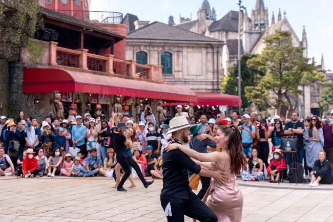 Không chỉ các cặp đôi trẻ tuổi, nhiều đôi vợ chồng lâu năm cũng đặc biệt yêu thích không khí Valentine ở Bà Nà. Họ dành tặng cho nhau những cành hồng rạng rỡ, lưu lại những hình ảnh ngọt ngào và cùng nhún nhảy trong show diễn nghệ thuật đặc biệt của 40 nghệ sĩ quốc tế. Âm nhạc và vũ điệu flamenco nồng nàn, zumba nóng bỏng cùng màn trình diễn “Chasing the sun” mãn nhãn đã mang tới cho nhiều cặp đôi mùa Valentine ấn tượng hơn bao giờ hết.