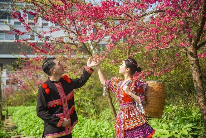 Ngược về Tây Bắc, nhiều cặp đôi đã có ngày lễ Valentine “độc nhất vô nhị” ở Sun World Fansipan Legend, Sa Pa, khi hóa thân thành chàng trai, cô gái vùng cao đang hẹn hò nhau trong khu vườn xuân. Đến Fansipan vào dịp này là lạc bước trong thung lũng hoa đào đang bung nở trong nắng xuân, từng cánh nhỏ bay bay trong gió, tựa khung cảnh trong chuyện cổ tích.