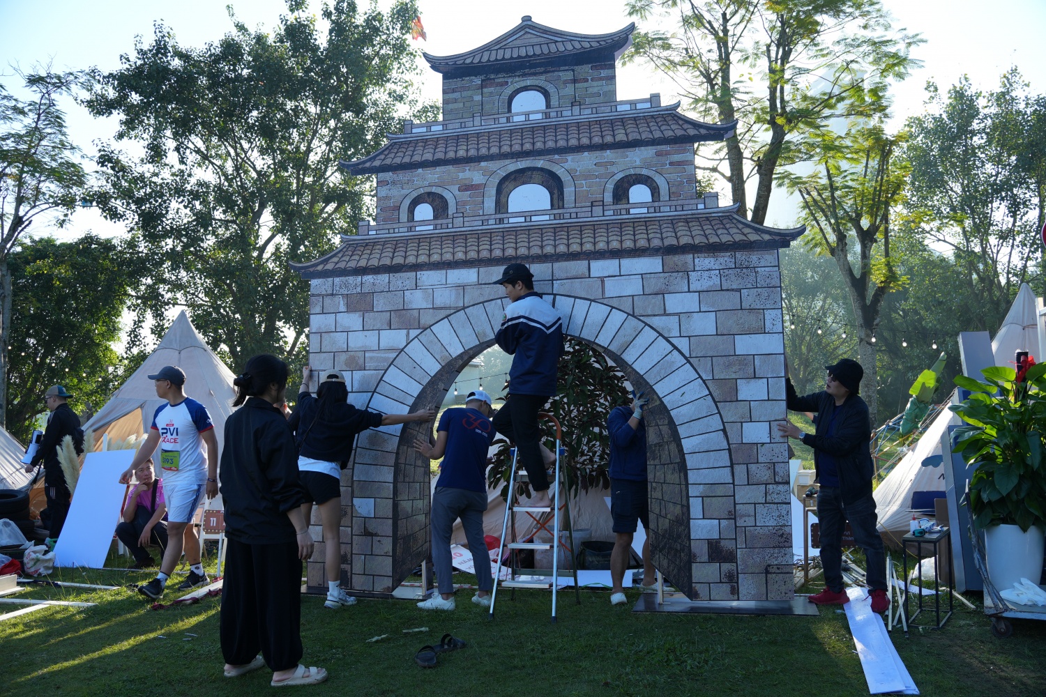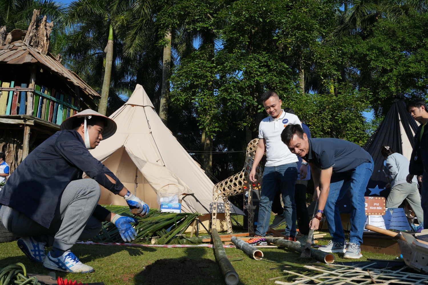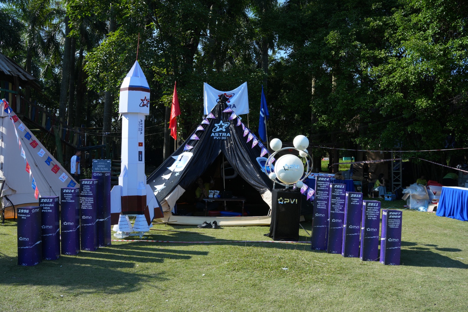 | Song song với môn thi đấu điền kinh, các hoạt động tập thể diễn ra đồng thời với nội dung trang trí lều trại “Tỏa sáng PVI”. |