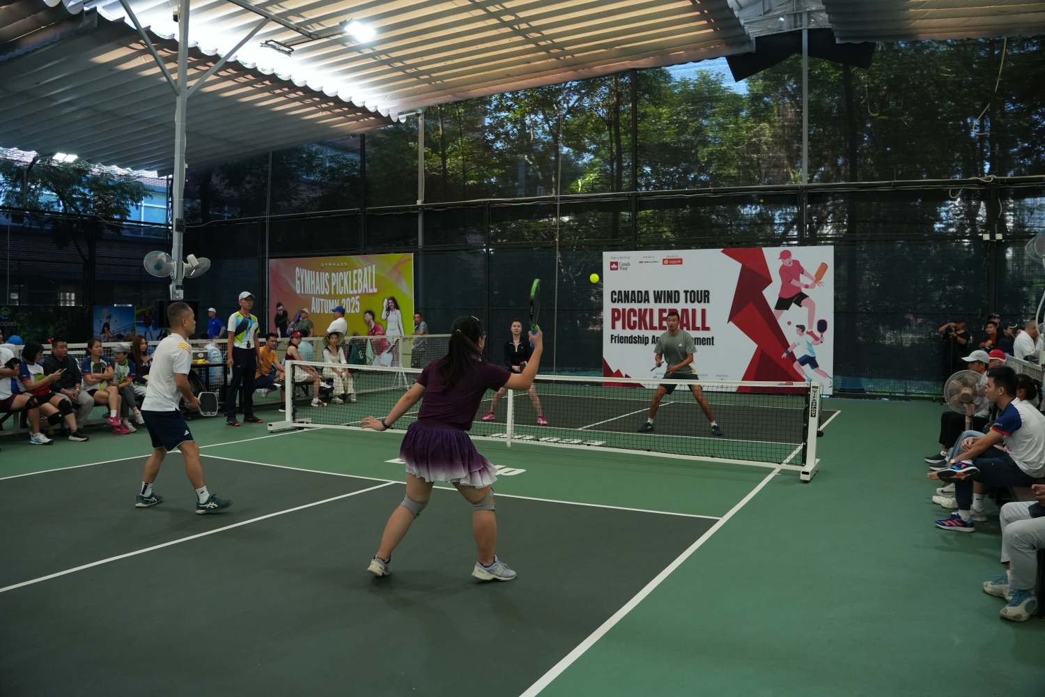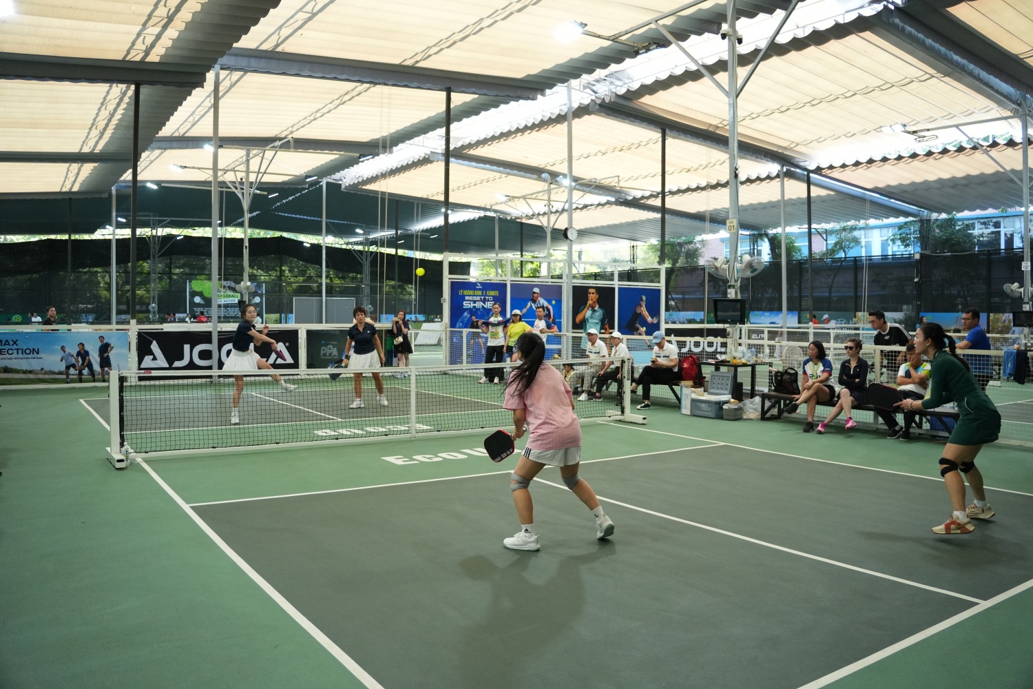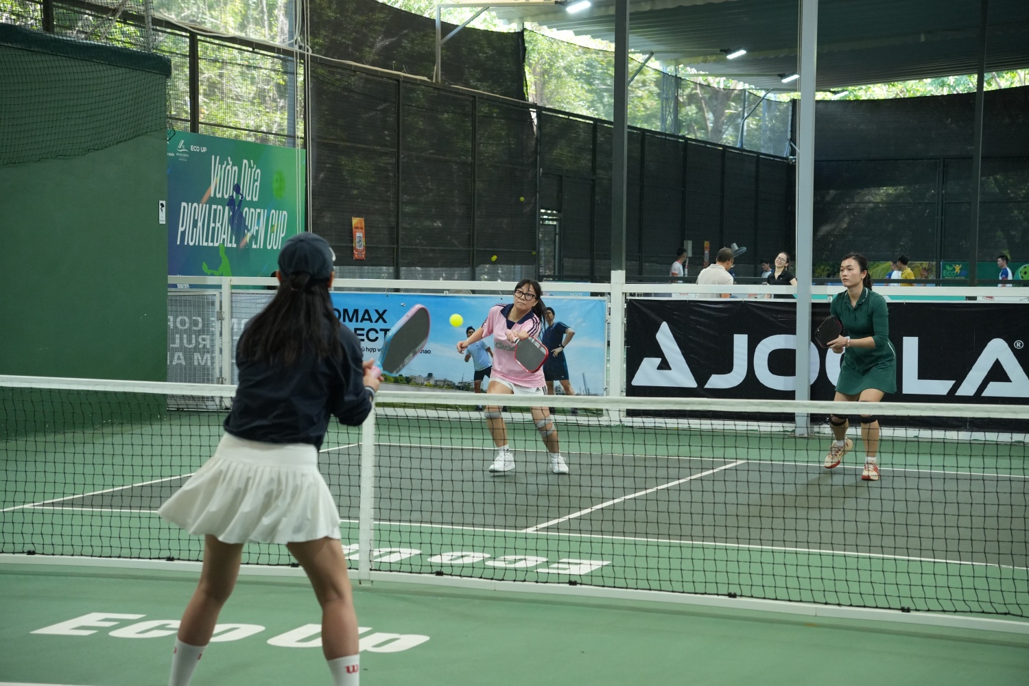 | Cùng thời điểm, môn pickleball diễn ra với các hạng mục đôi nam, đôi nữ và đôi nam nữ. |