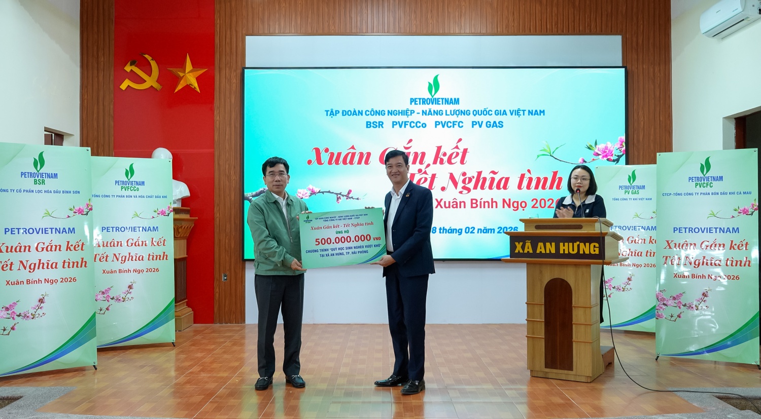 Ngày 8/2, tại xã An Hưng (thành phố Hải Phòng), Tập đoàn Công nghiệp - Năng lượng Quốc gia Việt Nam (Petrovietnam) đã tổ chức chương trình an sinh xã hội “Petrovietnam: Xuân Gắn kết - Tết Nghĩa tình”, trao quà và hỗ trợ kinh phí chăm lo Tết cho các hộ nghèo, hộ cận nghèo, gia đình chính sách và học sinh có hoàn cảnh khó khăn trên địa bàn.