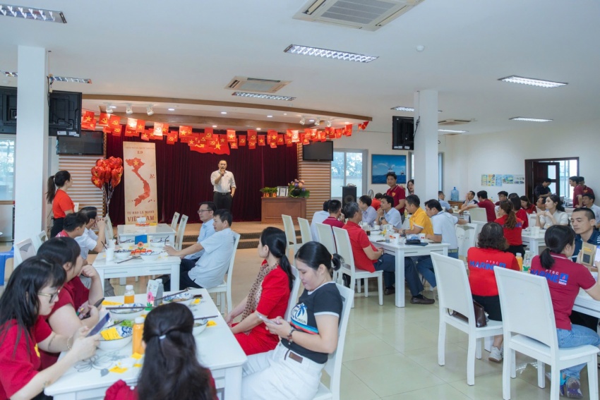 Không gian rực rỡ cờ đỏ sao vàng tại trụ sở cùng những khoảnh khắc sẻ chia đã để lại ấn tượng đẹp, góp phần khắc sâu niềm tự hào dân tộc, đồng thời khẳng định vai trò tiên phong, trách nhiệm xã hội của PTSC Marine trong hành trình 50 năm xây dựng và phát triển Petrovietnam.