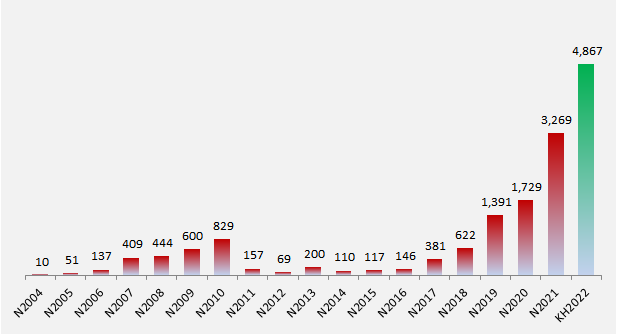 LNTT của SeABank qua các năm và kế hoạch năm 2022. Đvt: Tỷ đồng Nguồn: VietstockFinance |