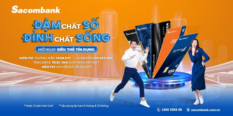 Từ hôm nay đến hết 31/12/2022, Sacombank triển khai chương trình ưu đãi siêu đặc biệt “Đậm chất số - Đỉnh chất sống” dành cho các khách hàng mở mới thẻ tín dụng và khách hàng giới thiệu mở thẻ tín dụng thành công với số tiền thưởng không giới hạn.