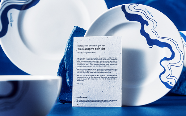 VIB cũng tạo không gian cho sự sáng tạo trong dự án hợp tác với Bùi Công Khánh và gốm sứ Minh Long. Ngân hàng đặt ra ba tiêu chí là tinh tế, tối giản - hiện đại và truyền tải được thông điệp sâu sắc về sự kết nối tình thân trong gia đình, xã hội.